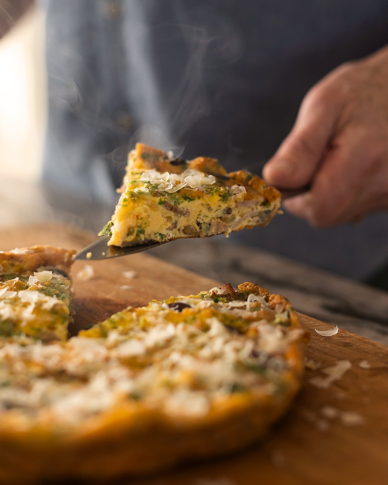 I like frittatas for a late breakfast and having bacon and eggs in one dish always appeals. It’s a hearty robust dish you see a lot in Italy.