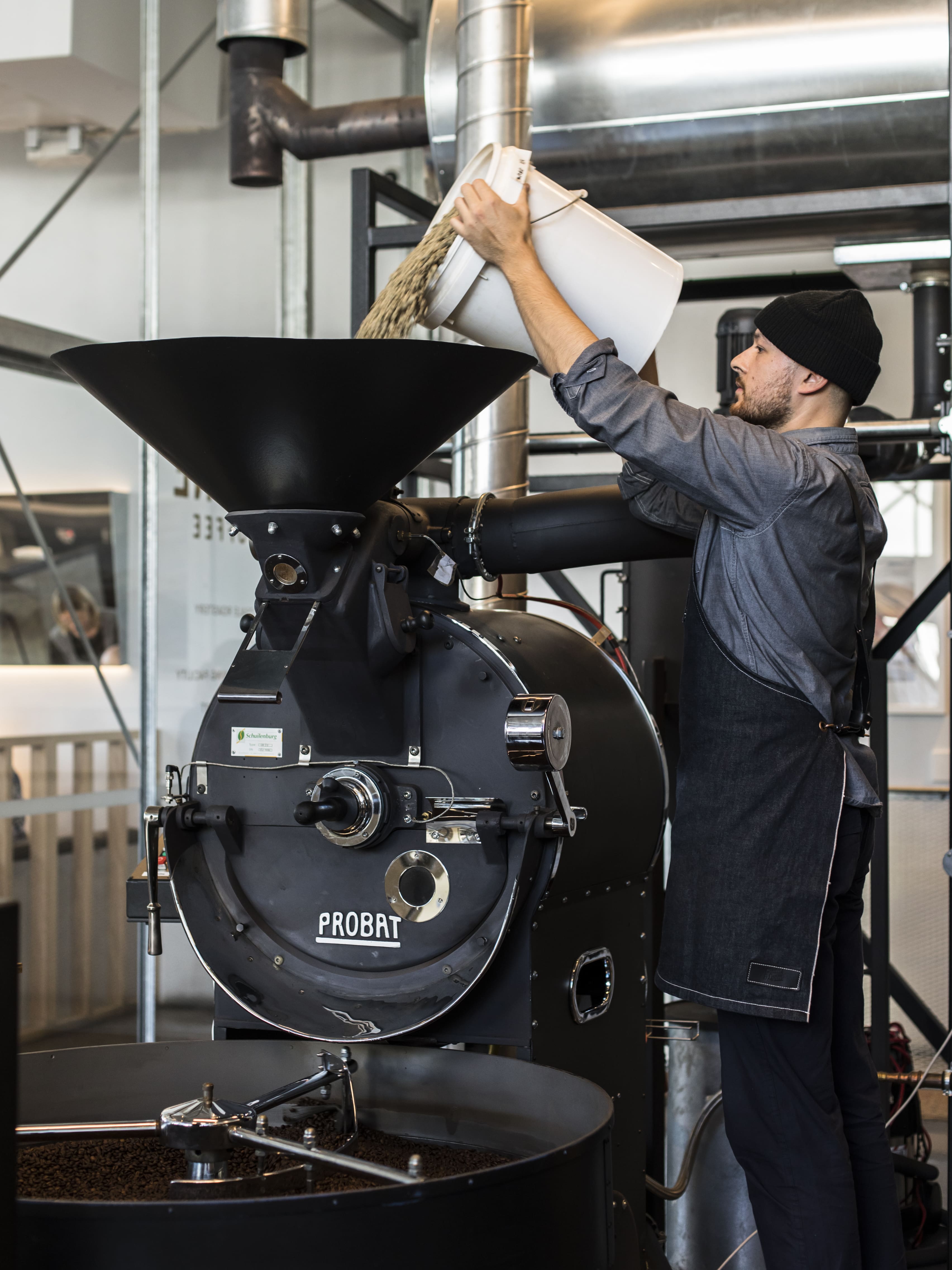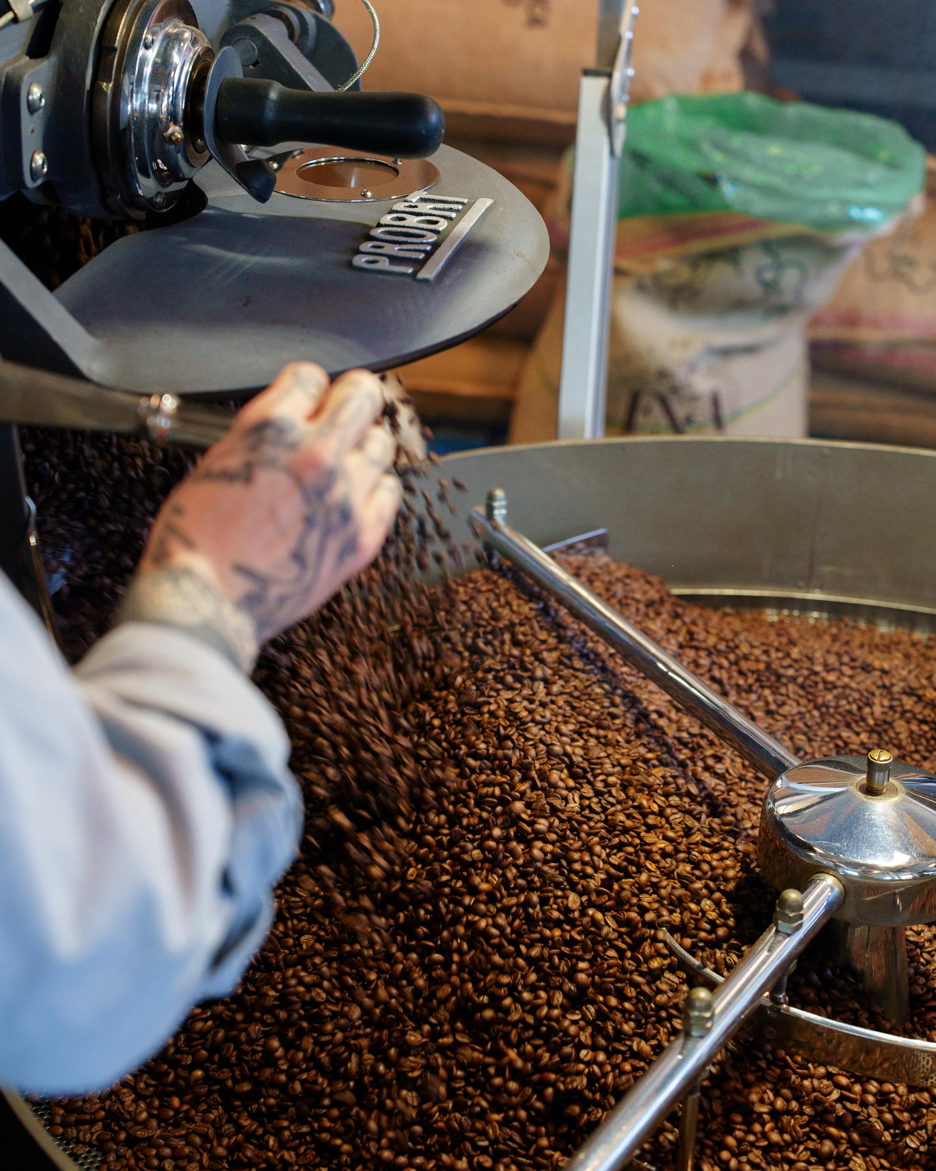 Definitely - aroma is one of the key cues we use during roasting to track how the coffee is developing. In its raw state, green coffee usually smells grassy and sweet, almost vegetal. As the roast begins, those aromas shift into something more like bread or dried hay, which signals that the coffee is beginning to cook. As it progresses, the initial smells fade and give way to deeper, more complex aromas - often nutty, chocolatey, or caramel-like depending on the roast profile. While we’re not solely reliant on smell - there’s a lot of technology involved - it’s still an essential sensory guide in the process.
